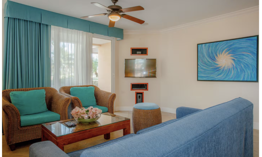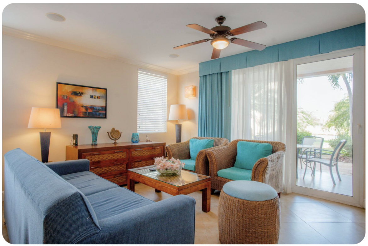 The home is fully air-conditioned and features 2 bedrooms, 2.5 bathrooms, a spacious living room, and a self-catering kitchen equipped with all amenities.